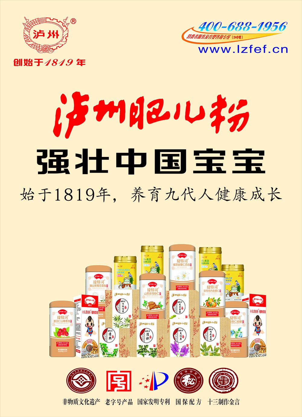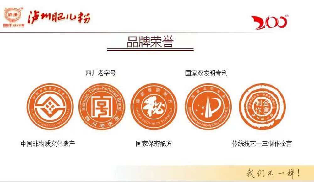 “瀘州肥兒粉”系有兩百年歷史傳承和六十年創(chuàng)牌與建廠史的嬰幼兒輔食及適合大眾養(yǎng)生和體弱多病中老年人食用的產(chǎn)品,我們獨(dú)特的“藥食同源配方”一度成為國(guó)家保密配方。“瀘州肥兒粉”的前生誕生于1819年瀘州人蔣宗明在小市開辦的“瀘州米羹羹”作坊。直到新中國(guó)成立后,“瀘州米羹羹”作坊的傳承人何汝彬于1956年6月將“瀘州米羹羹”作坊與當(dāng)時(shí)的瀘州市副食品加工廠合并成立了 “瀘州市地方國(guó)營(yíng)北城肥兒粉廠”,陳雅南任廠長(zhǎng)至退休!盀o州肥兒粉”是以“肥兒丸”古方為基礎(chǔ),主料為糙米,配料選用能健脾益胃、消食助運(yùn)的大豆、綠豆、苡仁、芡實(shí)、建神曲等7-21種藥食同源級(jí)食材經(jīng)過“炒、燒、烤、燜、烘、焙,磨、蒸、煮、炙、碾、沙、土”等十三道手工工藝制作,發(fā)明創(chuàng)造的我國(guó)首例嬰幼兒藥理配方米粉。1956年夏,產(chǎn)品基本定型,并以“瀘州”二字設(shè)計(jì)制作了品牌標(biāo)記,第一代“瀘州肥兒粉”正式誕生。1960年4月3日成功注冊(cè)“肥兒粉”商標(biāo);又于1979年10月31日獲準(zhǔn)以“瀘州”為商標(biāo)使用,從此“瀘州肥兒粉”擁有了雙商標(biāo)。1988年,“瀘州肥  兒粉”被瀘州市醫(yī)藥管理局正式確定為保健食品;1993年“瀘州肥兒粉”獲得蒙古國(guó)烏蘭巴托國(guó)際食品博覽會(huì)金獎(jiǎng)。