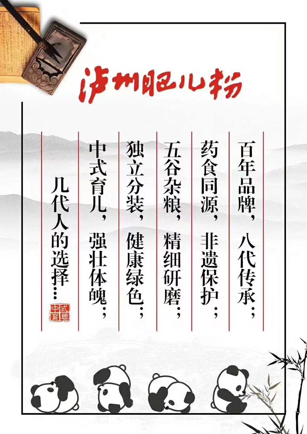 瀘州肥兒粉股份有限公司繼續(xù)以“瀘州肥兒粉”系列產(chǎn)品作為主營(yíng)產(chǎn)品,堅(jiān)持“藥食同源”配方品質(zhì)不變、作為非遺產(chǎn)品制作技藝傳承不斷的前提下,根據(jù)市場(chǎng)需求,不斷對(duì)產(chǎn)品配方和技藝進(jìn)行升級(jí)改良,積極探尋企業(yè)的多極發(fā)展方向,讓“瀘州肥兒粉”更加全方位地滿足包市場(chǎng)和消費(fèi)者的需求,更加健康放心地感受到極富民族文化養(yǎng)生傳統(tǒng)與飲食獨(dú)創(chuàng)性的輔食魅力。