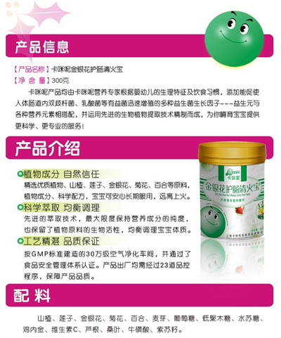 卡咪呢小兒板藍(lán)根顆粒是上?ㄟ淠啬笅胗闷酚邢薰酒煜庐a(chǎn)品,專為嬰幼兒設(shè)計(jì),專業(yè)、安全,幫助寶寶可以預(yù)防感冒抵抗病毒,是廣大父母育兒的好幫手?ㄟ淠匦喊逅{(lán)根顆粒不含任何色素、防腐劑,安全放心。