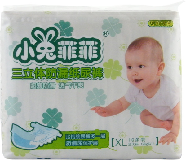 小兔菲菲嬰兒紙尿片是廣州咕嚕咕嚕嬰幼兒用品有限公司主打品牌產(chǎn)品。產(chǎn)品具有超薄、超透氣、超能吸、超舒爽的特性,可瞬間吸收寶寶排出的尿液,讓寶寶遠(yuǎn)離紅屁屁。