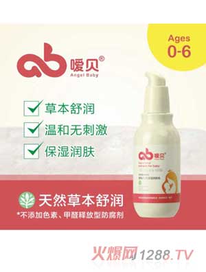 噯貝嬰兒鮮奶沐浴露純天然,無添加,不添加香精、色素、酒精、防腐劑等,給寶寶皮膚表面構建一層牢固的保護膜,增強肌膚抵御外界刺激的能力,天然庇護寶寶幼嫩肌膚,給寶寶純正、純粹的愛,萌寶寶必備哦!