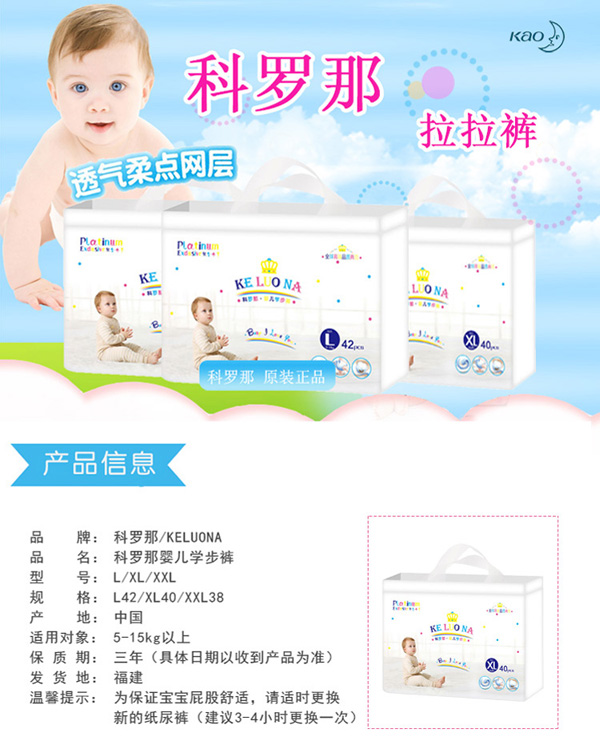采用全芯體吸收層,不斷裂,不起坨,貼身綿柔,配合科學(xué)化的產(chǎn)品設(shè)計不僅讓尿液吸收速度加快更令吸收量大幅度提升到了800ml。極致熱風(fēng)底膜,超過10000個透氣孔,透氣舒適。親膚透氣底膜,良好的透氣性的PE膜,形成有效的縱向?qū)α骺焖賹?dǎo)出廢氣和濕氣,沒有紅屁屁,讓寶寶的皮膚盡情的呼吸。360°雙層立體防側(cè)漏,寶寶怎么動都不怕。