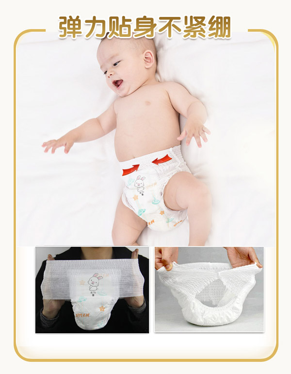 宜片無憂童趣紙尿褲采用熱風(fēng)材質(zhì),親膚柔軟,選用柔軟熱風(fēng)凸點無紡布作為面料,具有蓬松度高,彈性好,手感柔軟,透氣性好等特點,寶寶穿著舒適,玩的開心,睡得安心。