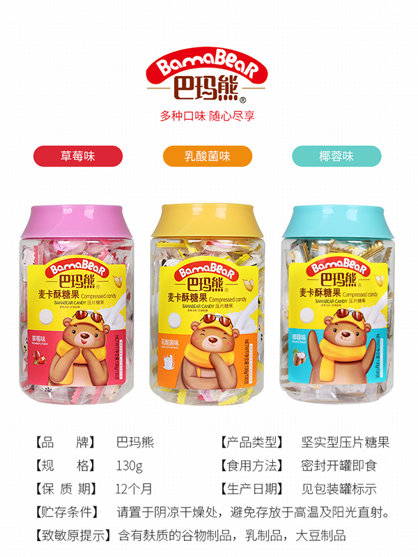 您所在位置:首頁(yè)>廣東麥丹郎食品有限公司>巴瑪熊麥卡酥糖果 乳酸菌味