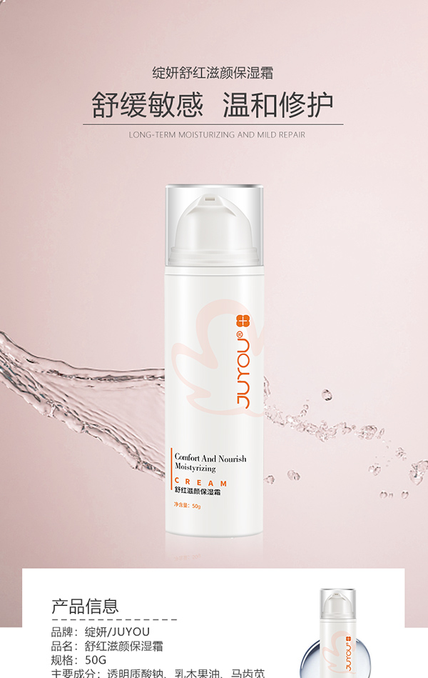 您所在位置:首頁(yè)>成都綻妍生物技術(shù)有限公司>綻妍舒紅滋顏保濕霜
