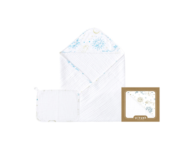 yikyak一體密織紗布連帽浴巾擁抱太陽的月亮