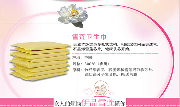 伊品雪蓮衛(wèi)生巾,采用天然竹纖維、石墨烯雪蓮芯、進口高分子復合紙、PE透氣膜等為主要原料,天然竹纖維為多孔狀結構,相較綿柔網(wǎng)面更透氣,石墨烯雪蓮芯片,健康從“芯”開始。植物提取,清潔私處,吸水透氣,不含熒光劑,健康更安心。更有超強吸收力,不回滲,沒有異味,擺脫尷尬;粘黏力好,穩(wěn)貼內褲補位移。每片均為獨立包裝,方便更衛(wèi)生,超薄更舒適,有芯更貼心!