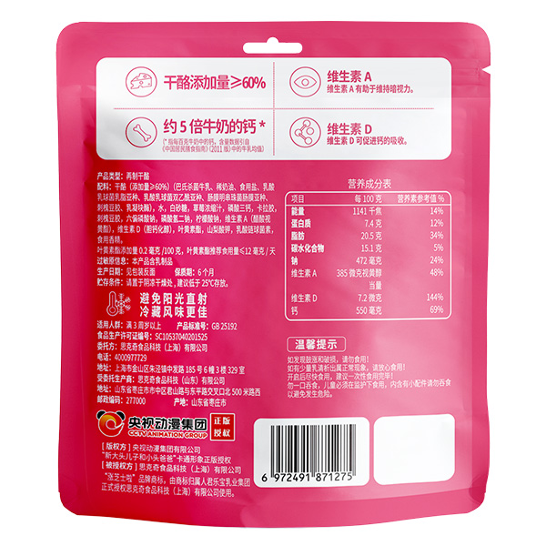漲芝士啦奶酪棒甄選優(yōu)質(zhì)原材料,濃縮牛奶精華,約5倍牛奶的鈣,干酪添加量≥60%。富含維生素A、維生素D、葉黃素酯,營養(yǎng)全面補(bǔ)充。