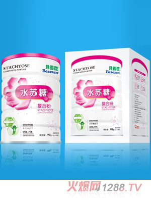 水蘇糖:水蘇糖是天然存在的一種四糖,是一種可以顯著促進(jìn)雙歧桿菌等有益菌增殖的功能性低聚糖。純品為白色粉末,味稍甜,甜度為蔗糖的22%,味道純正,無任何不良口感或異味。其分子結(jié)構(gòu):“半乳糖-半乳糖-葡萄糖-果糖”。水蘇糖對(duì)人體胃腸道內(nèi)的雙歧桿菌、乳酸桿菌等有益菌群有著極明顯的增殖作用,能迅速改善人體消化道內(nèi)環(huán)境,調(diào)節(jié)微生態(tài)菌群平衡。它能促進(jìn)形成有益菌在消化道內(nèi)的優(yōu)勢(shì)菌地位,抑制產(chǎn)氣產(chǎn)酸梭狀芽孢桿菌等腐敗菌的生產(chǎn),另外產(chǎn)生大量生理活性物質(zhì),調(diào)節(jié)腸道pH值、滅殺致病菌,阻遏腐敗產(chǎn)物生成,抑制內(nèi)源致癌物的產(chǎn)生和吸收,并且分解衍生出多重免疫功能因子。