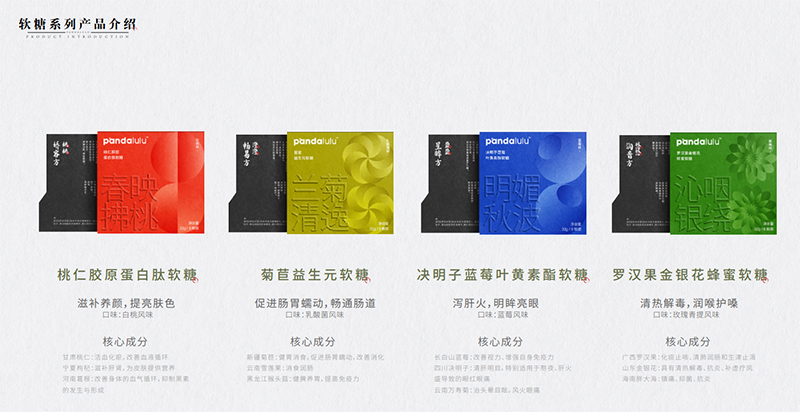 pandalulu產(chǎn)品理念:解構(gòu)中醫(yī)組方,精準(zhǔn)匹配當(dāng)下國人保養(yǎng)需求,匯集全國優(yōu)秀原廠地食材,采用前沿生物科技,打造集美感、新鮮感、文化感健康食品,引領(lǐng)東方健康時尚。