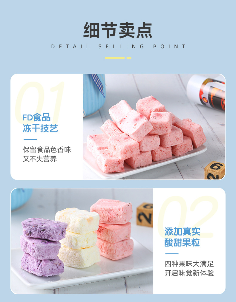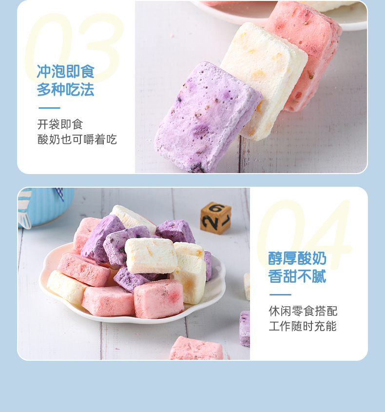 • OEM貼牌沖泡凍干酸奶塊1.2g/塊果粒益生菌塊即食代加工口味定制