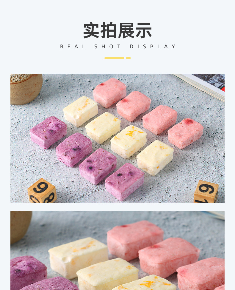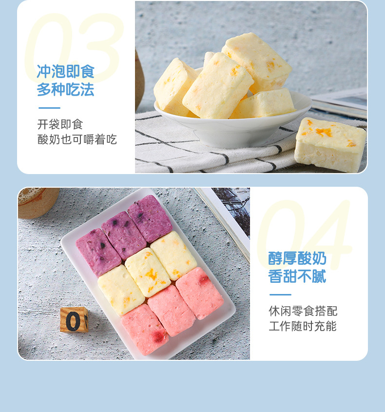 • OEM貼牌沖泡凍干酸奶塊1.2g/塊果粒益生菌塊即食代加工口味定制