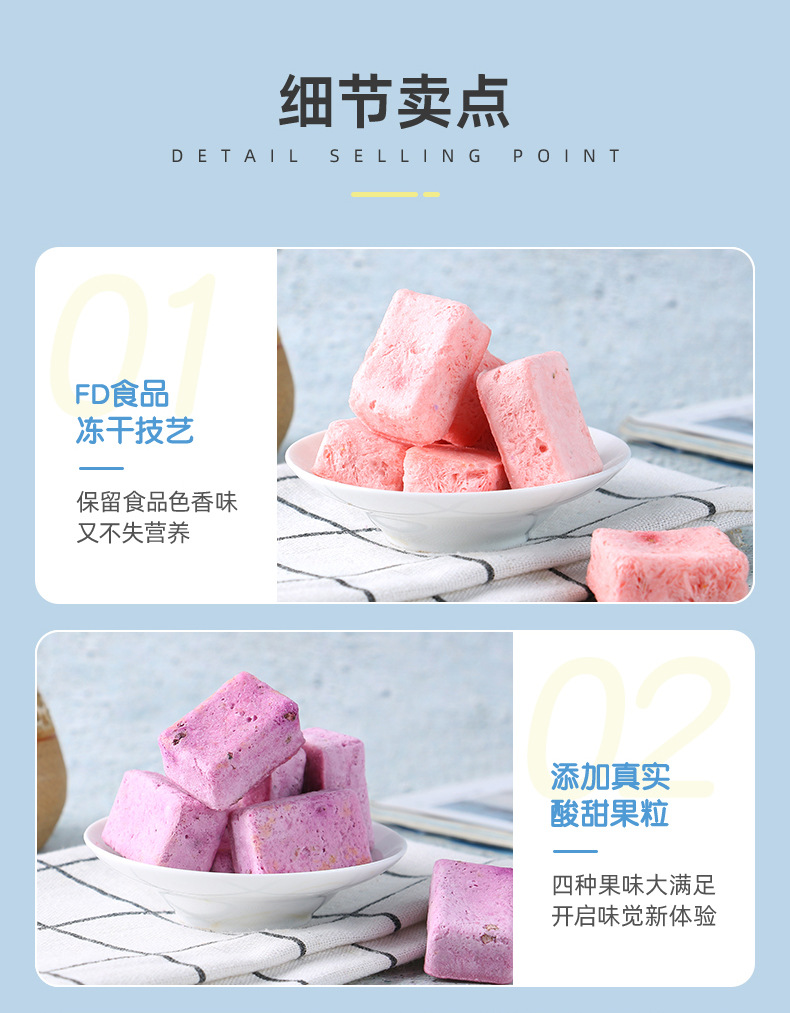 • OEM貼牌凍干果粒酸奶塊3克即食型草莓藍莓味益生菌塊口味定制源頭