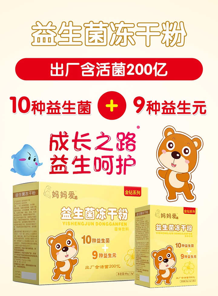 白云山東泰益生菌凍干粉,由深圳慧爾健康科技有限公司傾情推出,選用臺(tái)灣進(jìn)口菌株,耐受性好,穩(wěn)定性佳,皆是國家規(guī)定嬰幼兒專用菌株,如乳雙歧桿菌、鼠李糖桿菌等。采用雙層微囊包埋技術(shù),兩層噴