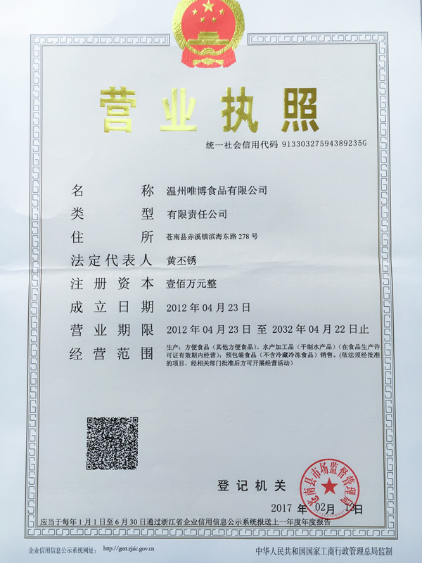 溫州唯博食品有限公司創(chuàng)辦于2012年,座落于享有“紫菜之鄉(xiāng)”美譽(yù)的蒼南縣赤溪鎮(zhèn),占地面積5000多平方米,建筑面積3000多平方米,現(xiàn)擁有員工95人,其中專業(yè)技術(shù)人員28人。目前擁有大型淡水紫菜養(yǎng)殖生產(chǎn)基地800畝,是一家集海產(chǎn)品養(yǎng)殖、加工、銷售一條龍的企業(yè),主導(dǎo)的產(chǎn)品有韓式香酥海苔、芝麻夾心海苔、海苔卷、壽司海苔、紫菜湯等產(chǎn)品。