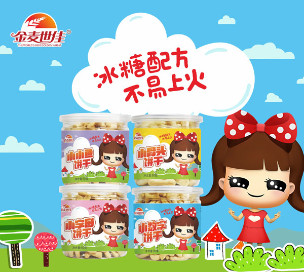 金麥?zhǔn)兰?/strong>:用金子一樣的心,尋找營養(yǎng)與口感的完美平衡,打造屬于寶寶的零食王國,讓金麥成為世代佳話。