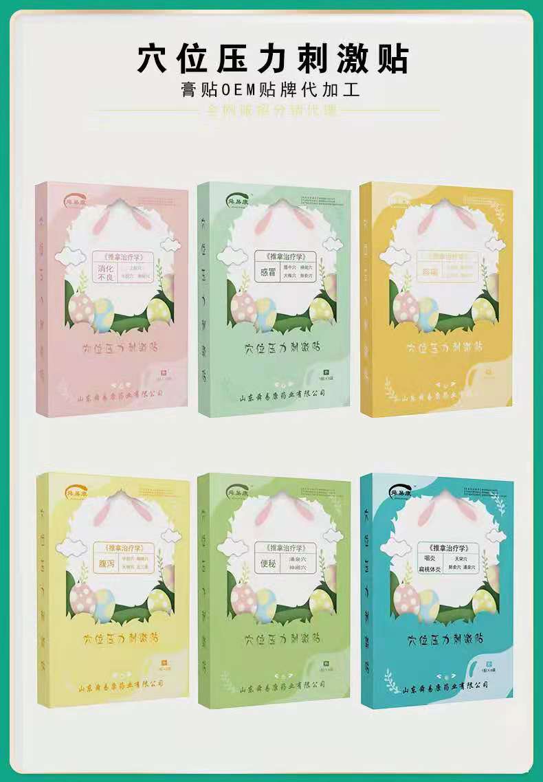 穴位壓力刺激貼小兒的系列比較多,穴位壓力刺激貼通過(guò)刺激穴位的作用來(lái)治療一些常見的疾病,比如感冒、咳嗽、退熱、積食、咽炎、扁桃體炎等等常見病。都有較好的治療功效。山東舜易康藥業(yè),源頭工廠,貼牌定制代加工18853051565