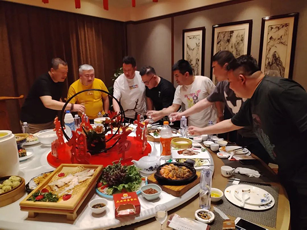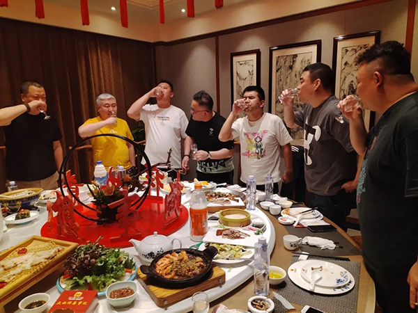 菲瑞營銷中心總經(jīng)理及銷售總監(jiān)陪同貴客,在當(dāng)天的“歡迎晚宴”和遠道而來的“家人們”一起談未來、講生活,大家如親人般相談甚歡。