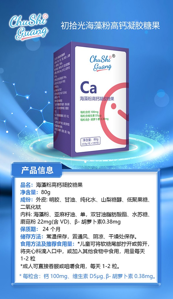 當(dāng)下,營養(yǎng)品深得市場青睞,北京初拾光品牌管理有限公司旗下的初拾光系列產(chǎn)品更是圈粉無數(shù)!就比如這款“初拾光海藻粉高鈣凝膠糖果”可謂上市即大賣,各大門店紛紛上貨,消費者青睞有加!
