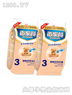 百家餐營(yíng)養(yǎng)專家根據(jù)當(dāng)代的生理特征及飲食習(xí)慣,研制出專供中國(guó)bao--bao的百家餐雙歧因子米粉。百家餐雙歧因子米粉產(chǎn)品精選各種有機(jī)食品為主要原料,富含多種維生素及礦物質(zhì),營(yíng)養(yǎng)、健康、安全有保障。