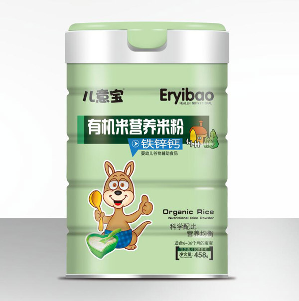 兒意寶核桃蓮子鐵鋅鈣益生元嬰幼兒有機(jī)米營養(yǎng)米粉罐裝產(chǎn)品展示