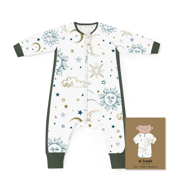 yikyak四層紗布長袖分腿睡袋(側拼款) 日月星辰產品展示