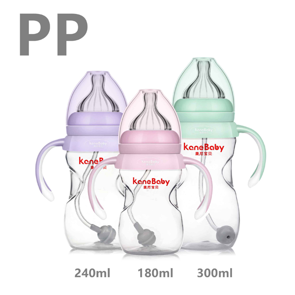 康尼寶貝寬口收腰形雙色手柄帶吸管PP奶瓶180ml產(chǎn)品展示
