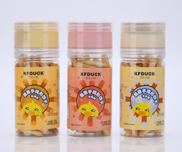 功夫小鴨蘸醬手指形餅干草莓牛奶香橙多種口味餅干小零食135g產(chǎn)品展示