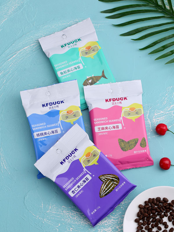 功夫小鴨核桃杏仁魚松芝麻夾心海苔調(diào)味小零食12g產(chǎn)品展示