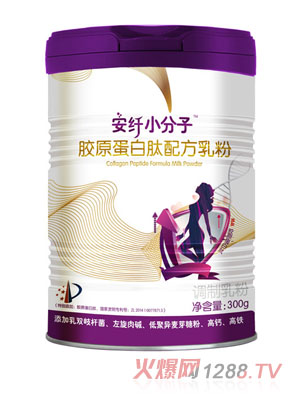“安纖”小分子”肽乳粉,高蛋白低脂配方(每100g乳粉含有蛋白質(zhì)35g且脂肪含量僅0.9g):每100g乳粉中添加了國家發(fā)明專利深海鱈魚小分子膠原蛋白肽(抗凍蛋白,能夠提升益生菌凍干制劑活性60%以上,使益生菌的功能更為強(qiáng)大)13000mg+活性益生菌(乳雙歧桿菌)100億CFU以上+低聚異麥芽糖1000mg+鈣1000mg+鐵8.5mg+左旋肉堿35mg,在強(qiáng)化免疫、腸道功能的基礎(chǔ)前提下,為改善肌膚及降脂塑形提供動(dòng)能,并同時(shí)補(bǔ)充鈣質(zhì)、鐵質(zhì)流失!