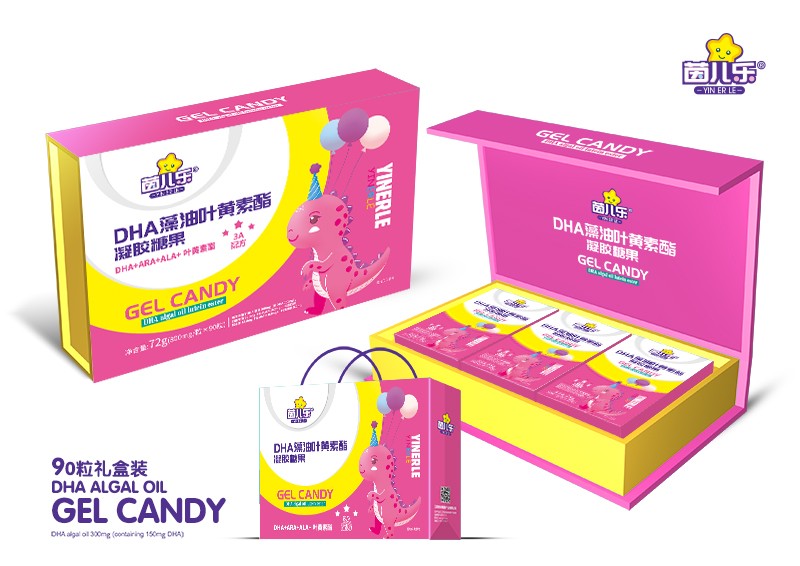 其中,茵兒樂DHA藻油葉黃素酯凝膠糖果,DHA+ARA+ALA+葉黃素酯,3A配方,每克添加了DHA藻油300mg(含DHA 150mg),亞麻籽油22.5mg(含ALA≥10.0mg),花生四烯酸油脂18.8mg(含ARA≥8.0mg),葉黃素酯5.1mg,高含量,營養(yǎng)多,90粒禮盒裝,品質(zhì)保證,更實惠,更大氣!